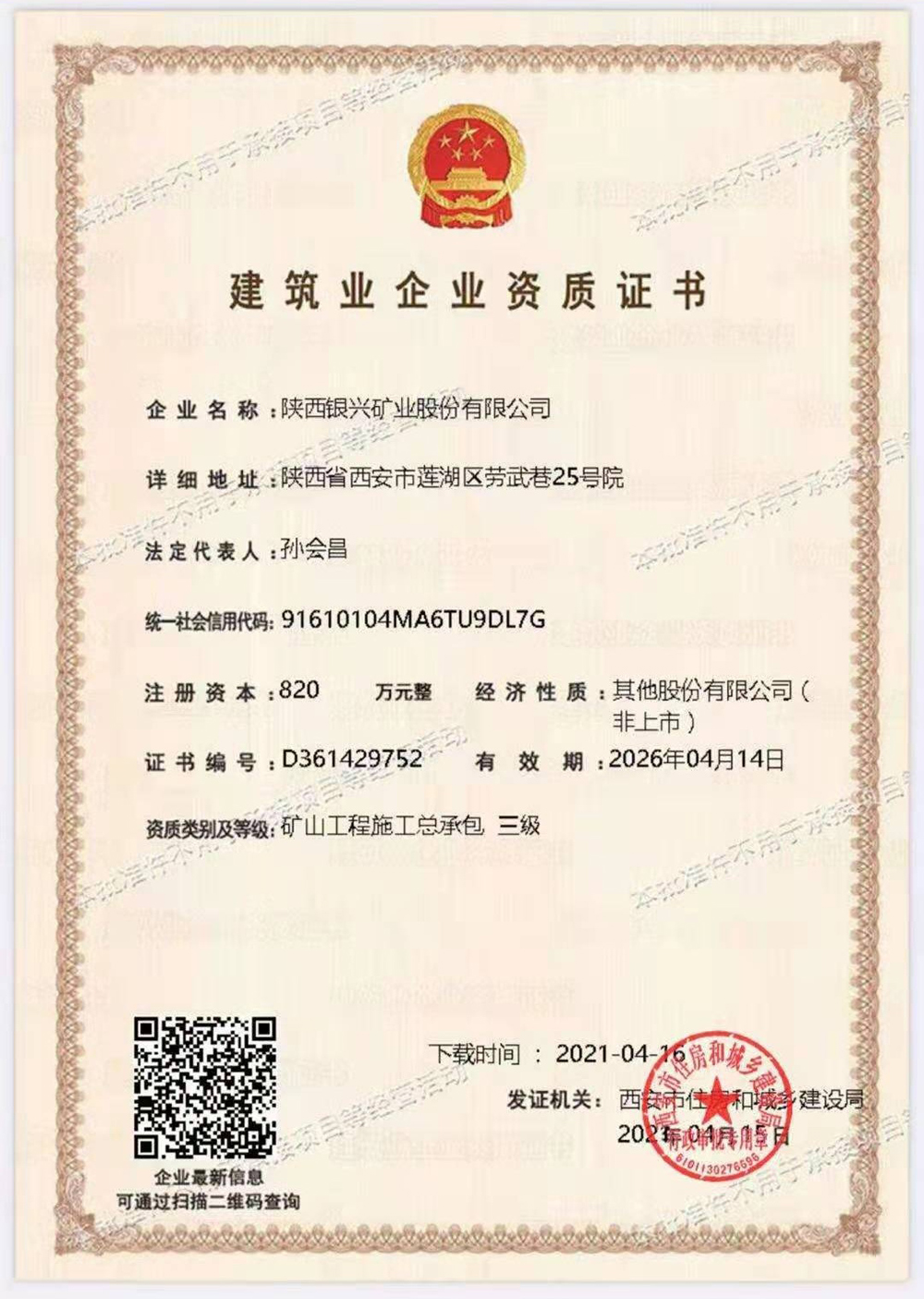 建筑業(yè)企業(yè)資質(zhì)證書